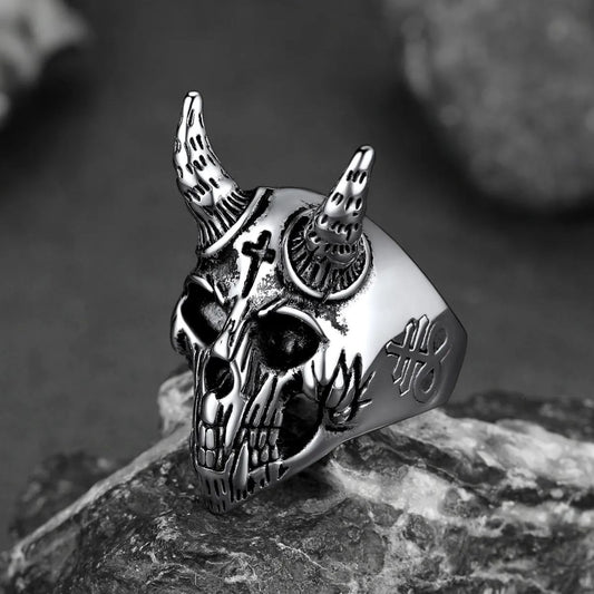 Satanic Baphomet Goat Skull Head Ring for Men