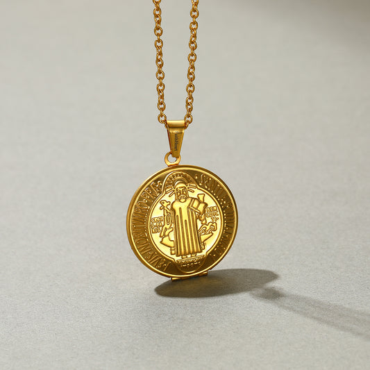 FaithHeart Custom Engraving Saint Benedict of Nursia Pendant Locket Necklace
