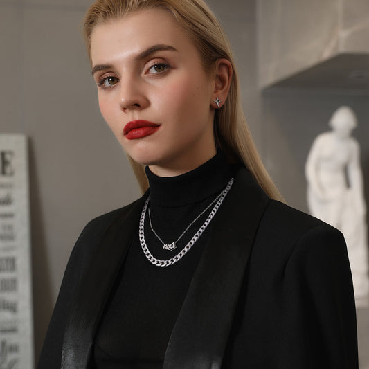 - Stand-alone Statement: Some of our chain link necklaces, especially the more dramatic Miami Cuban Link Chain or Classical Cuban Link Chain, are heavy enough to be worn as a stand-alone piece. This creates a crisp and assertive look, emphasizing the chain design and material, be it a stainless steel cross chain base or a shiny silver men's cross chain version.
