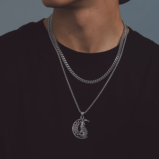 Unleash your inner warrior with our striking collection of Viking Necklaces. Inspired by Norse mythology and Viking symbols, each necklace is carefully crafted with high-quality materials to embody strength, courage, and heritage. Whether you're seeking a bold statement piece or a subtle nod to Viking culture, Faithheart's Viking necklaces offer a range of styles for men and women, such as Thor's Hammer, Norse Wolf, Raven Skull & more elements. Shop now and wear your history.