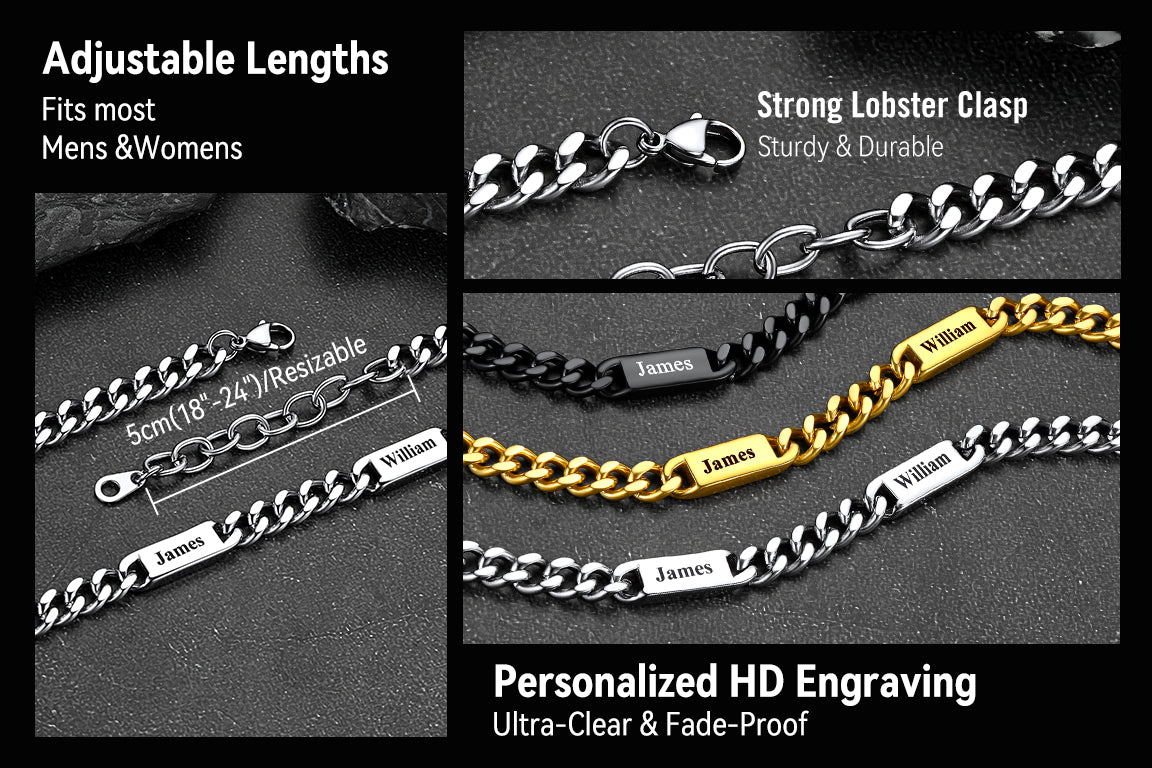 Custom Engraved 1-5 Name Chain Link Necklace for Men Family