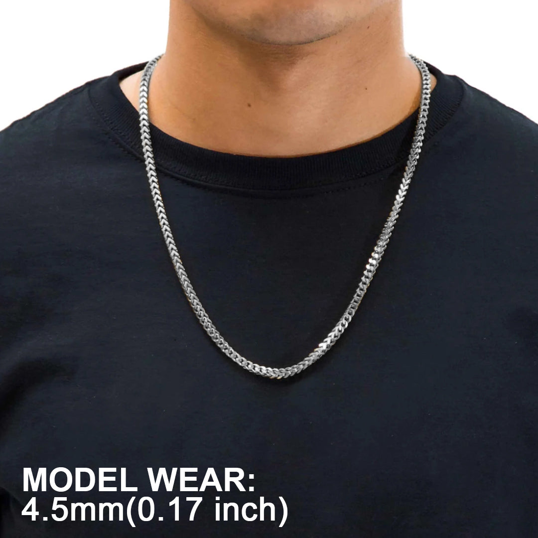 Setzen Sie ein starkes Statement mit der Cuban Link Halskette für Herren, erhältlich in den Breiten 3 mm, 4,5 mm und 6 mm. Gefertigt aus hochwertigem Edelstahl bietet dieses klassische Design einen eleganten, maskulinen Look, der perfekt zu jedem Outfit passt. Die robuste Konstruktion sorgt für Langlebigkeit, während die glatte, polierte Oberfläche für einen angenehmen Tragekomfort sorgt. Werten Sie Ihre Schmucksammlung mit dieser stilvollen Kette auf, die mühelos Stärke und Eleganz vereint. Perfekt für die Herrenmode – diese Cuban Link Halskette ist ein Must-have.