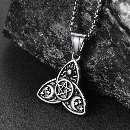 Triple Moon Goddess Pentagram Necklace