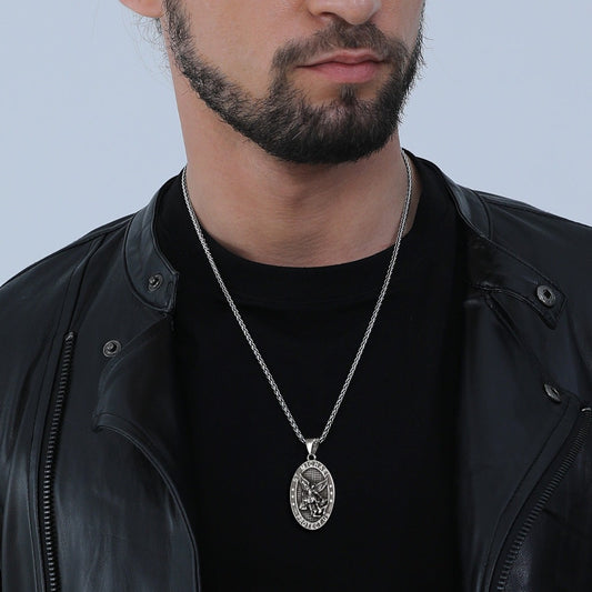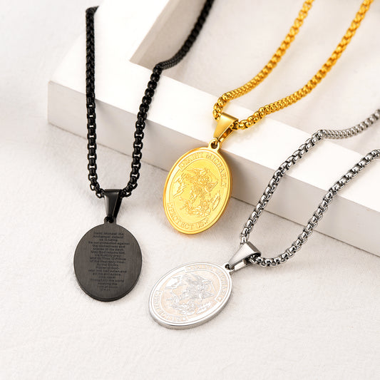 Collier pendentif FaithHeart Saint Michel Archange, disponible en forme ovale, carrée ou ronde. Choisissez-en un pour vous ou pour l'être aimé et profitez de la protection de ce délicat collier Saint Michel. Livraison et emballage cadeau offerts !