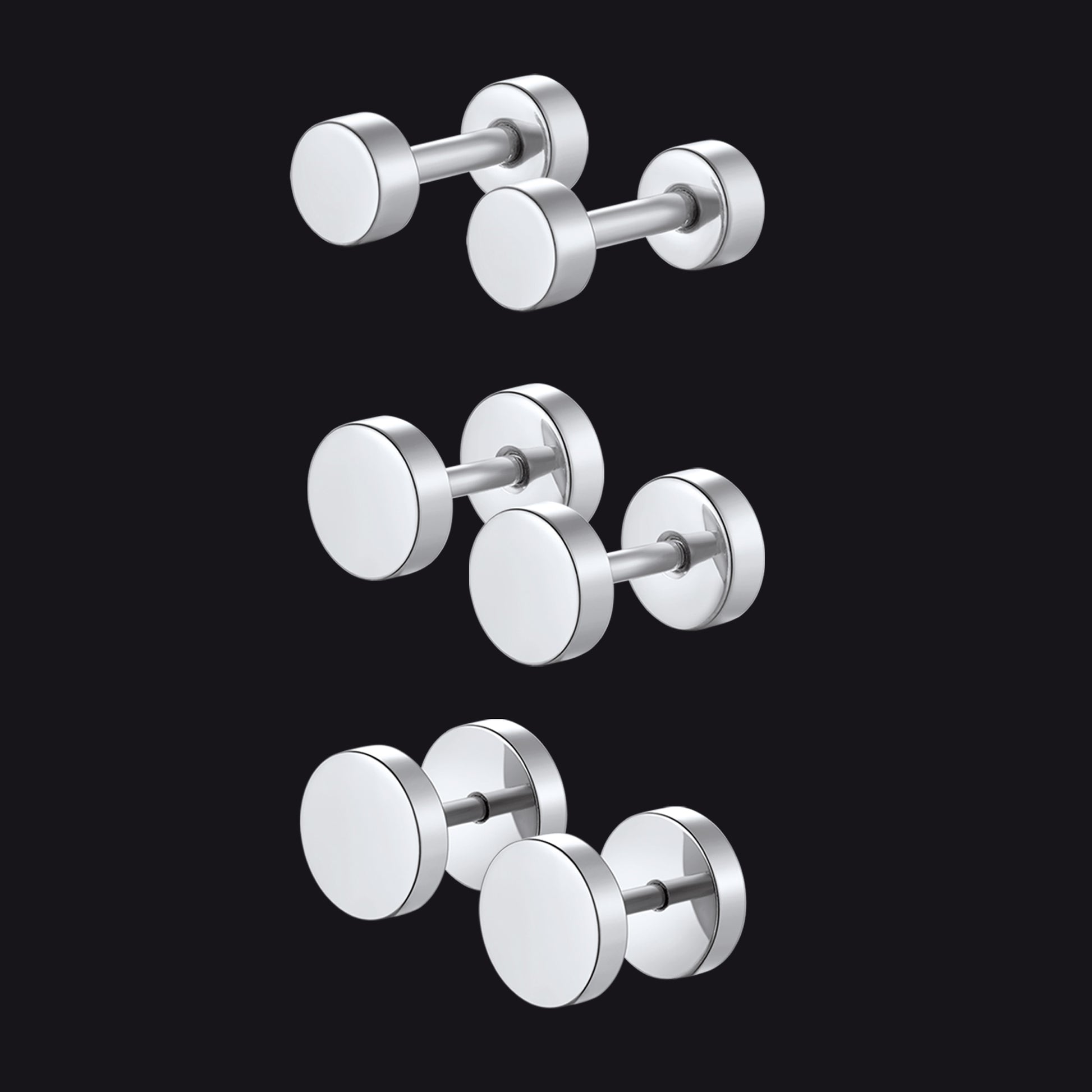 Find your perfect fit with this 4/6/8MM Width 3 Pairs Simple Round Stud Earrings Set for Men. This thoughtfully curated collection features three pairs of classic round studs in graduated sizes—dainty 4mm for subtle shine, classic 6mm for everyday wear, and bold 8mm for maximum presence.