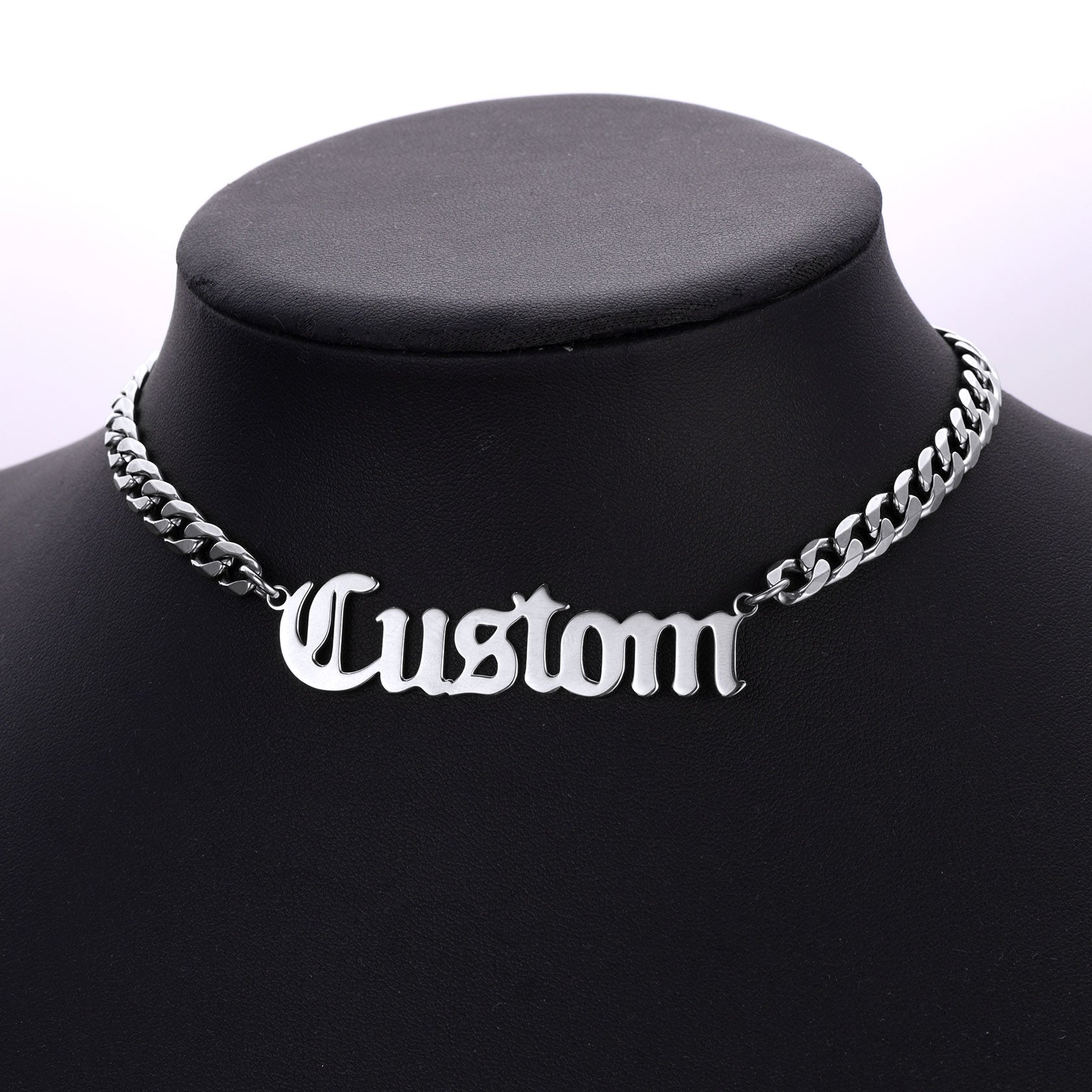 Custom Nameplate Choker Chain Necklace for Men Women 18 Inch