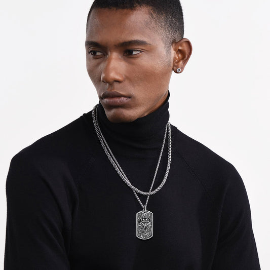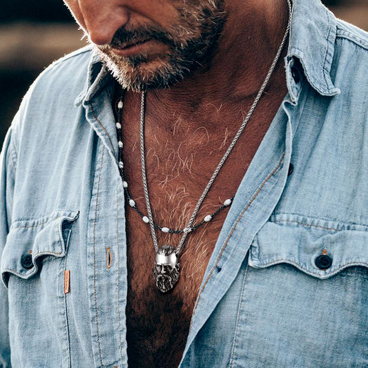 Unleash your inner warrior with our striking collection of Viking Necklaces. Inspired by Norse mythology and Viking symbols, each necklace is carefully crafted with high-quality materials to embody strength, courage, and heritage. Whether you're seeking a bold statement piece or a subtle nod to Viking culture, Faithheart's Viking necklaces offer a range of styles for men and women, such as Thor's Hammer, Norse Wolf, Raven Skull & more elements. Shop now and wear your history.