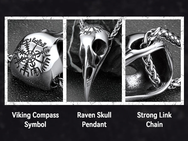 Viking Raven Skull Pendant Necklace can be used as a guiding talisman or threaded upon your favorite chain or lace and hung as a charm. It is a rebirth, restoration, renewal, transformation, and change. With it, you always leave to the light even in the darkest times.