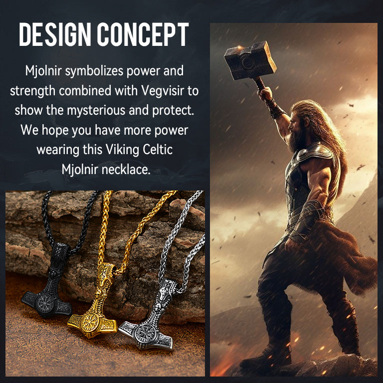 Features a detailed Mjolnir pendant engraved with the sacred Vegvísir, blending Norse heritage with timeless style. The Thor's Hammer represents strength and protection, while the Viking Compass symbolizes guidance and exploration. More than jewelry—it’s a personal talisman for those who embrace resilience, adventure, and purpose.
