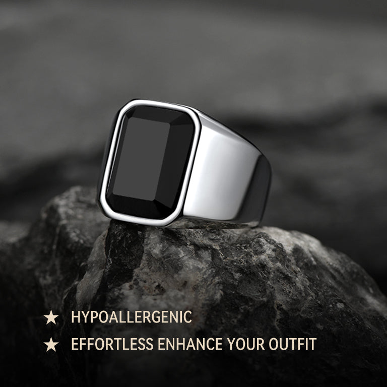 The 316L stainless steel used in its construction is hypoallergenic, minimizing the risk of allergies or skin irritations, and allowing for comfortable and long-lasting wear. The ring features a full-cut synthetic agate gemstone, skillfully inlaid to add a touch of individuality and uniqueness.